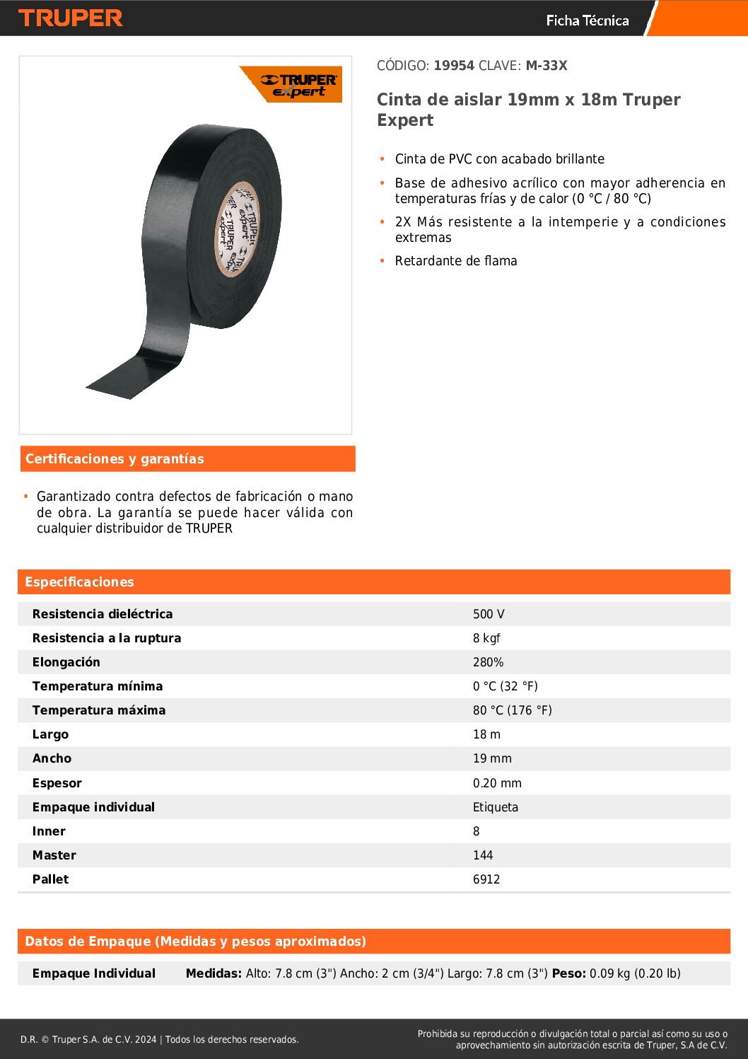 - Base de adhesivo acrílico con mayor adherencia en temperaturas frías y de calor (0 °C / 80 °C)